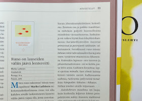 Miten runo rakentuu? Missä runo tapahtuu? Marko Laihisen esikoisrunokokoelmassa runo voi olla kahden sivulle laskeutuneen lauseen väliin jäävä vapaa tila, jossa assosiaatio liikkuu, siivekkäänä tai liukuen. Kehrä, haloilmiö? Jään miettimään kirjan helähtävänlyyristä nimeä: halohan on ilmakehän optinen ilmiö. Halot syntyvät, kun auringon tai kuun valo taittuu ilmassa leijuvista jääkiteistä.